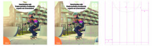Er is een vast verhouding van het tekstvlak ten op zicht van de de foto, logo en themakader links.